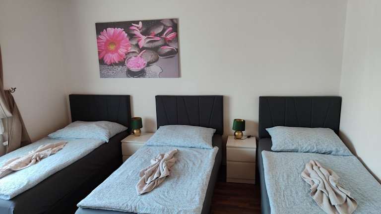 Das Apartment verfügt über 2 Schlafzimmer und 1 Badezimmer. Es ist mit Bettwäsche, Handtüchern und einem Flachbild-Sat-TV ausgestattet. Der Essbereich bietet ausreichend Platz für Mahlzeiten und die voll ausgestattete Küchenzeile ermöglicht es Ihnen, Ihre eigenen Gerichte zuzubereiten. Genießen Sie die Aussicht auf den Garten von der Terrasse aus.
