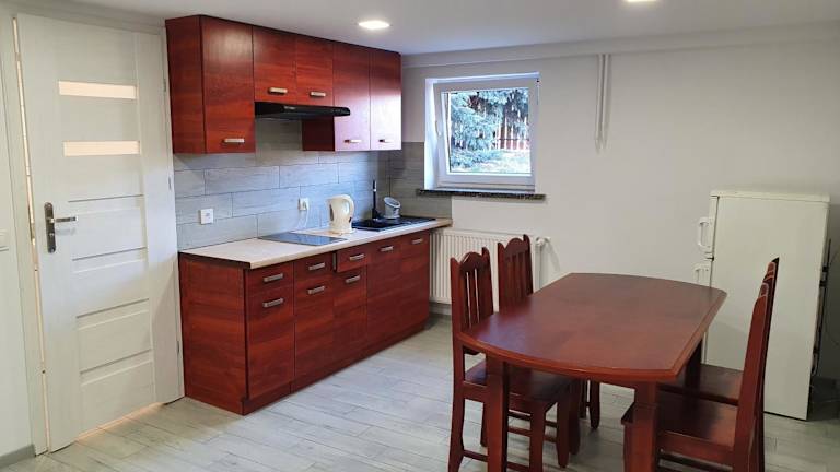 Erleben Sie einen erholsamen Aufenthalt in der Silence Villa in Szydłowice. Genießen Sie den Stadtblick, den Garten und die Terrasse dieser Unterkunft. Jede Unterkunft verfügt über eine voll ausgestattete Küche, einen gemütlichen Sitzbereich und modernes Entertainment. Entspannen Sie im eigenen Bad und nutzen Sie die Waschmaschine für Ihren Komfort. In der Umgebung gibt es zahlreiche Freizeitmöglichkeiten wie Wandern, Reiten und Angeln. Zusätzlich bietet die Unterkunft einen Kinderspielplatz und einen Wasserpark. Entdecken Sie die Jahrhunderthalle und den Breslauer Hauptbahnhof in der Nähe. Der Flughafen Nikolaus-Kopernikus-Breslau ist ebenfalls gut erreichbar.