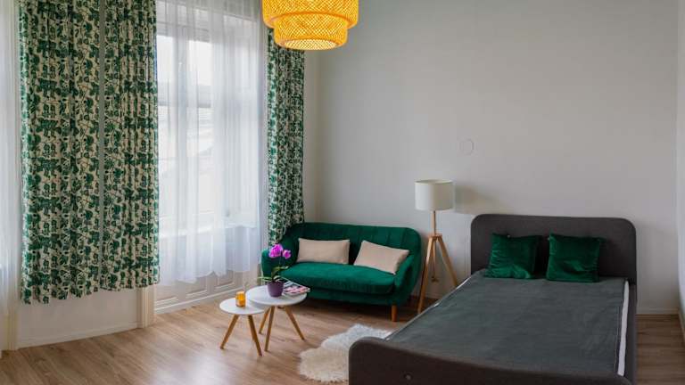Das Silentium City Apartman Sárvár bietet ein gemütliches und gut ausgestattetes Apartment im Erdgeschoss. Das Apartment verfügt über ein Schlafzimmer, in dem Sie sich nach einem ereignisreichen Tag ausruhen können. Der Flachbild-Sat-TV sorgt für Unterhaltung und die voll ausgestattete Küche bietet alle Annehmlichkeiten, die Sie für die Zubereitung von Mahlzeiten benötigen. Hier finden Sie einen Kühlschrank, einen Backofen, eine Waschmaschine, eine Mikrowelle und ein Kochfeld. Handtücher und Bettwäsche werden gestellt, um Ihren Aufenthalt so angenehm wie möglich zu gestalten.