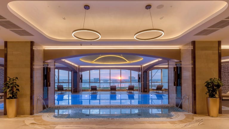 Die Hotelanlage umfasst sowohl einen Innenpool als auch einen saisonalen Außenpool, die für Erholung und Fitness genutzt werden können. Weitere Freizeitmöglichkeiten bieten ein Fitnessraum, verschiedene Angebote wie Aerobic und Massage-Anwendungen im Wellnessbereich, sowie eine Sauna und ein Dampfbad. Ein Kinderbadebereich sorgt für Spaß und Entspannung für die kleinen Gäste.