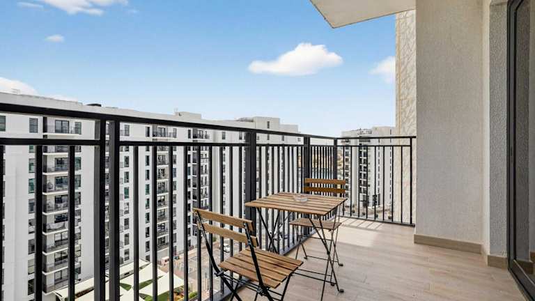 Die Ferienwohnung verfügt über 1 Schlafzimmer und 1 Badezimmer. Zur Ausstattung gehören Bettwäsche, Handtücher, ein Flachbild-TV, ein Essbereich sowie eine voll ausgestattete Küche. Der Balkon bietet einen Blick auf die Stadt.