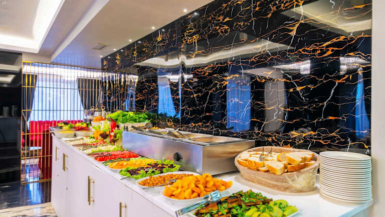 Jeden Morgen werden in der Unterkunft halal-zubereitete Frühstücksoptionen in Form eines Buffets angeboten.