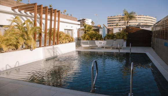 Luxusvillen Designt Für Einen Ruhigen Urlaub Mit VIP Service. Im Zentrum von Playa del Inglés gelegen, einer der bekanntesten und gefragtesten Zonen Gran Canarias, ist diese Anlage mit reduzierter Anzahl an Villen ein fast versteckter Urlaubsrückzugsort. Jede einzelne Villa, mit privater Terrasse (oder großem Balkon), wurde auf einem Stockwerk designt, mit hellen Innenräumen, klaren Linien und moderner und minimalistischer Einrichtung. Im Gemeinschaftsbereich gibt es einen sonnigen Pool im Spa-Stil, der im Winter beheizt ist. Ein Luxushotel wo sich Ruhe und Privatsphäre mit 5-Sterne Service vereinen.