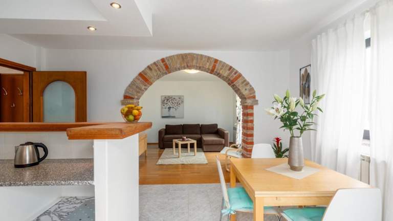 Silvia Sea View Funtana ist eine Unterkunft mit Meerblick und eigenem Balkon. Die Ferienwohnung bietet eine Vielzahl an Annehmlichkeiten und ist geeignet für Familien und langfristige Aufenthalte, wobei Junggesellenabschiede und ähnliche Feierlichkeiten nicht gestattet sind. Das Mindestalter für den Check-in beträgt 26 Jahre.