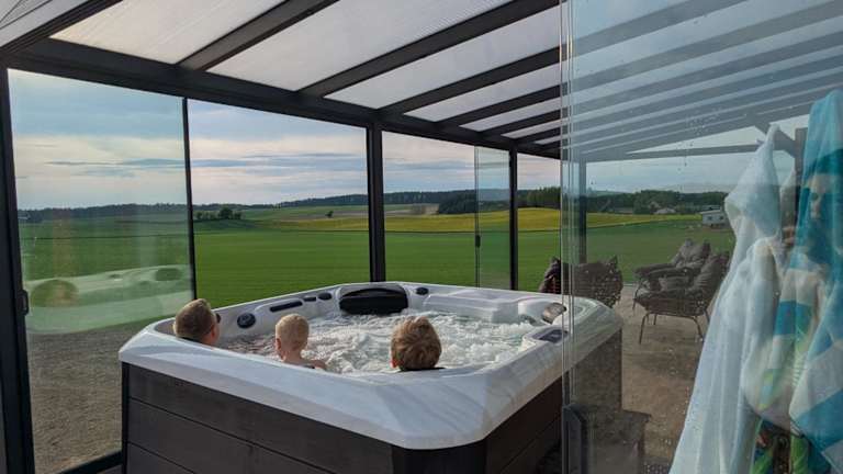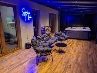 Das Ferienhaus bietet zwei Schlafzimmer, eine komplett ausgestattete Küche mit Kühlschrank und Geschirrspüler, sowie einen Flachbild-TV und einen Sitzbereich. Es gibt ein Badezimmer mit Dusche und die Unterkunft stellt Handtücher sowie Bettwäsche zur Verfügung. Zudem steht ein Whirlpool zur Verfügung.