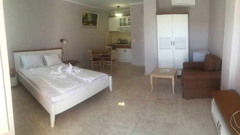 Das Hotel Sirena Palace in Obzor ist der ideale Ort für einen entspannten Urlaub. Hier können Sie kostenfreies WLAN und eine Klimaanlage nutzen und von den kostenlosen Privatparkplätzen profitieren. Die Unterkünfte sind modern eingerichtet und verfügen über eine voll ausgestattete Küche sowie einen Essbereich und einen gemütlichen Sitzbereich. Einige Unterkünfte bieten zudem einen Balkon oder eine Terrasse mit Meerblick. Entspannen Sie am Außenpool oder erkunden Sie die Umgebung beim Schnorcheln, Tauchen oder Radfahren. Die Städte Burgas und Varna sind ebenfalls einen Besuch wert und bequem zu erreichen. Der Badeort Sonnenstrand ist nur 34 km entfernt.
