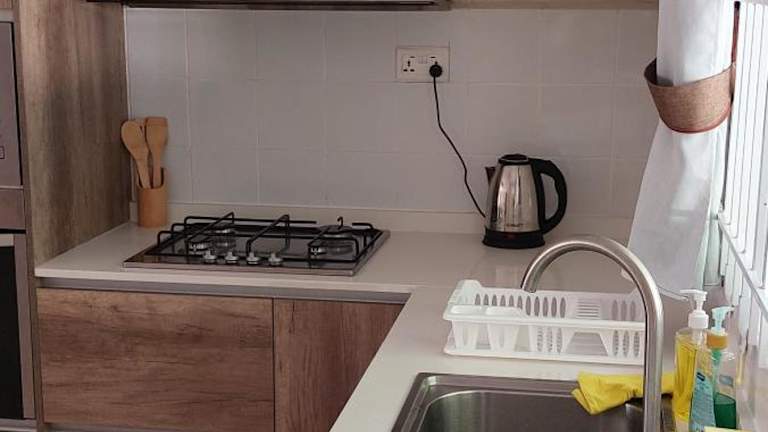 In der Ferienwohnung stehen drei Schlafzimmer, ein Wohnzimmer und eine voll ausgestattete Küche zur Verfügung. Die Küche ist mit einem Kühlschrank und einer Kaffeemaschine ausgestattet. Es gibt zwei Badezimmer, die mit einer Dusche und einem Haartrockner ausgestattet sind. Zur weiteren Ausstattung gehören Klimaanlage, Handtücher und Bettwäsche. Die Unterkunft ist Nichtraucher und umfasst auch Familienzimmer.