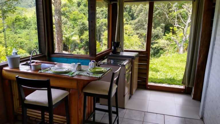 Die gemütlichen Chalets des Sítio Monte Moriá Pousada bieten eine komfortable Unterkunft mit einem eigenen Kamin und einem herrlichen Blick auf die Landschaft. Die Zimmer sind mit einem TV, einem DVD-Player und einer Minibar ausgestattet. Einige Zimmerkategorien verfügen auch über einen Essbereich oder eine Küchenzeile, um Ihren Aufenthalt noch angenehmer zu gestalten.