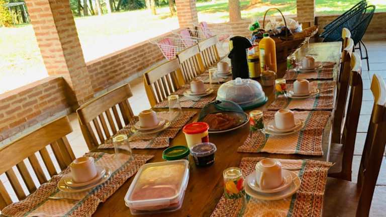 Verbringen Sie Ihren Urlaub im Sitio SMC - 15 min do centro de Altinópolis in Altinópolis und genießen Sie die Annehmlichkeiten wie den Außenpool, den Garten und die Bar. Das Ferienhaus bietet ausreichend Platz mit 4 separaten Schlafzimmern und 3 Bädern. Beginnen Sie Ihren Tag mit einem leckeren amerikanischen Frühstück. Die Umgebung bietet zudem zahlreiche Freizeitaktivitäten wie Wandern, Angeln und Billard.