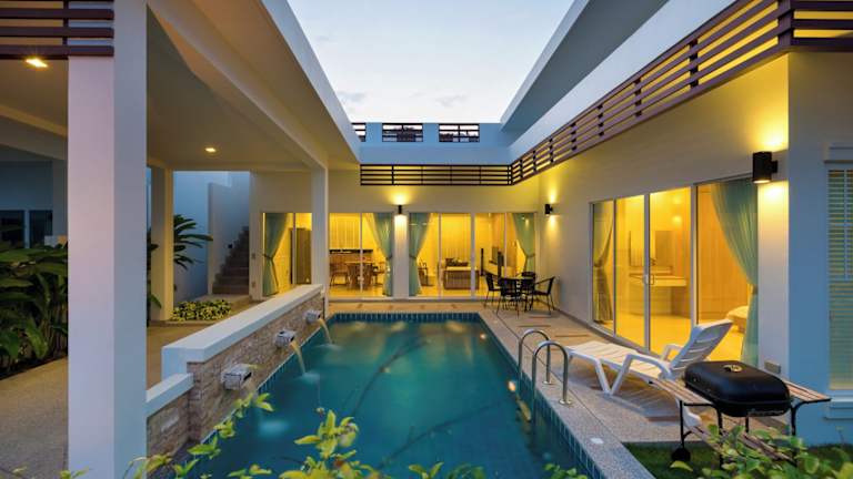 Die Sivana Villas Hua Hin bieten Ihnen eine komfortable und entspannte Unterkunft in Hua Hin. Genießen Sie den Zugang zu einem Fitnessraum, einer Sauna und einem Whirlpool sowie kostenfreies WLAN und einen schönen Garten. Die Villen sind gut ausgestattet und verfügen über eine voll ausgestattete Küche. Das Hotel bietet auch einen Transferservice und einen Parkplatz.