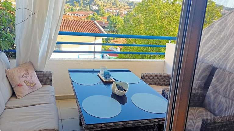 Das klimatisierte Ferienhaus im Siviri Sea & Forest bietet Platz für bis zu 4 Personen. Es verfügt über 2 Schlafzimmer und einen komfortablen Wohnbereich, in dem Sie sich entspannen können. Ein Flachbild-TV ist vorhanden, so dass Sie Ihre Lieblingssendungen verfolgen können. Die Küche ist mit einem Kühlschrank ausgestattet, so dass Sie Ihre eigenen Mahlzeiten zubereiten können. Ein Balkon bietet Ihnen die Möglichkeit, die frische Luft und den Blick auf die Berge zu genießen.