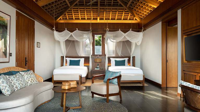 Die Unterkünfte im Six Senses Uluwatu bieten modernen Komfort und sind mit Annehmlichkeiten wie Klimaanlage, Flachbild-Sat-TV, kabellosen Lautsprechern und Bio-Kaffeemaschinen ausgestattet. Jede Unterkunft verfügt über eine Außenterrasse mit einem beeindruckenden Meerblick. Die Badezimmer sind geräumig und verfügen über ein Doppelwaschbecken, eine Innen- und Außendusche, hochwertige Pflegeprodukte und ein Hightech-WC.