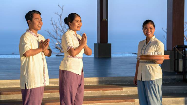 Das Six Senses Uluwatu ist ein elegantes Hotel in Uluwatu auf der Insel Bali, das mit einem atemberaubenden Blick auf den Indischen Ozean beeindruckt. Hier erwartet Sie eine erstklassige Unterkunft mit modernen Annehmlichkeiten, kostenfreiem WLAN und einem reibungslosen Check-in/-out-Erlebnis. Die Lage des Hotels ist ideal, da es in der Nähe einiger der schönsten Strände von Bali liegt. Das Hotel bietet auch eine Vielzahl von kulinarischen Genüssen, darunter indonesische und internationale Küche mit frischen und regionalen Zutaten. Die Spa- und Wellnesseinrichtungen des Hotels sind erstklassig und bieten eine Vielzahl von Entspannungsmöglichkeiten. Das freundliche und hilfsbereite Personal steht Ihnen zur Verfügung und gibt Ihnen gerne Tipps für die Erkundung der Umgebung.