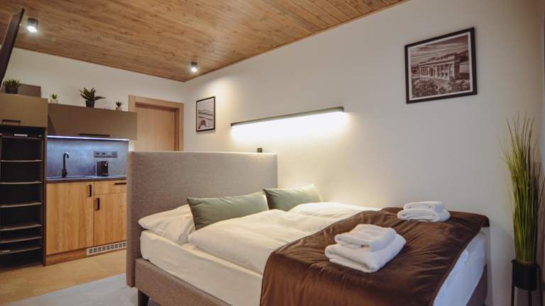 Die Zimmer im Hotel Skácelův dům sind komfortabel und mit modernen Annehmlichkeiten ausgestattet. Jedes Zimmer verfügt über eine voll ausgestattete Küchenzeile, in der Sie Ihre eigenen Mahlzeiten zubereiten können. Ein Flachbild-TV und ein eigenes Badezimmer mit Dusche und Haartrockner sind ebenfalls vorhanden. Darüber hinaus stehen Ihnen ein Kühlschrank, ein Kochfeld, eine Kaffeemaschine und ein Wasserkocher zur Verfügung.