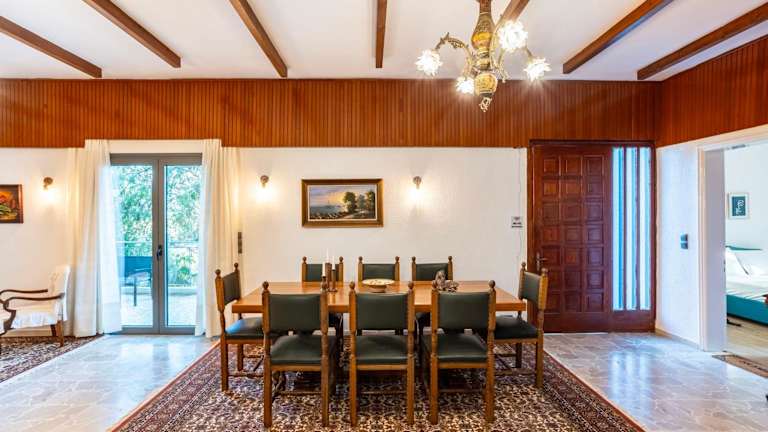 Das Ferienhaus verfügt über Klimaanlage, drei separate Schlafzimmer, ein Wohnzimmer sowie eine voll ausgestattete Küche mit Kühlschrank und Backofen. Es gibt zwei Badezimmer, und Handtücher sowie Bettwäsche werden bereitgestellt.