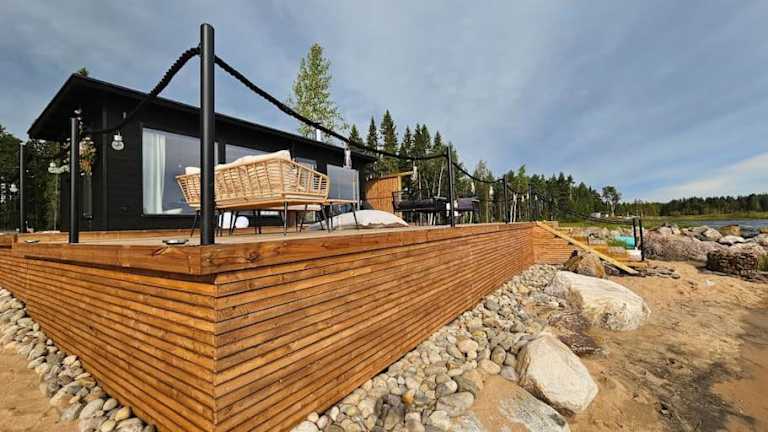 Das Chalet Skandinaavinen mökki rannalla befindet sich in Vaala, in einer Umgebung, die zahlreiche Freizeitaktivitäten bietet, wie Wandern, Skifahren und Angeln.