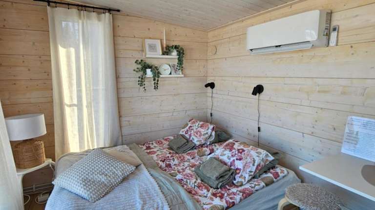 Das Chalet beinhaltet ein Schlafzimmer sowie eine voll ausgestattete Küche. Handtücher und Bettwäsche werden zur Verfügung gestellt.