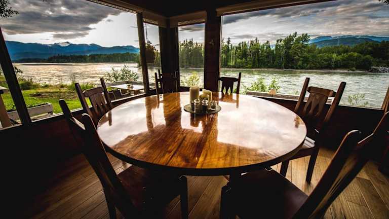 Beginnen Sie Ihren Tag mit einem köstlichen Frühstück im Frühstücksraum des Skeena River House Bed & Breakfast. Hier können Sie nicht nur eine leckere Mahlzeit genießen, sondern auch die malerische Aussicht auf den Fluss und die umliegenden Berge.