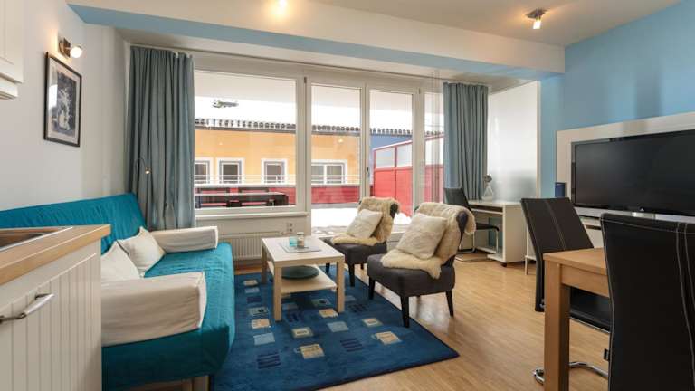 Die Wohneinheiten sind mit einem Kabel-Flachbild-TV, einem Essbereich und einer gut ausgestatteten Küche versehen. Zu den Küchengeräten zählen ein Kühlschrank, Geschirrspüler, Ofen, Kaffeemaschine und Wasserkocher. Jedes Appartement bietet ein eigenes Badezimmer mit einer Dusche.