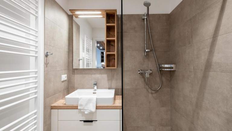 Die Ferienwohnung verfügt über 2 Schlafzimmer, eine Küche mit Kühlschrank und Geschirrspüler, einen TV sowie einen Sitzbereich. Das Badezimmer ist mit einer Dusche ausgestattet. Handtücher und Bettwäsche werden bereitgestellt.