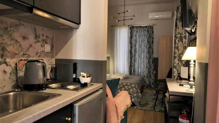 Die Skiron Junior Suite verfügt über eine voll ausgestattete Küche, in der Sie Ihre eigenen Mahlzeiten zubereiten können. Alternativ können Sie auch die vielen Restaurants und Cafés in der Nähe besuchen, um lokale Spezialitäten und internationale Küche zu genießen. Die Auswahl ist vielfältig und bietet für jeden Geschmack etwas.