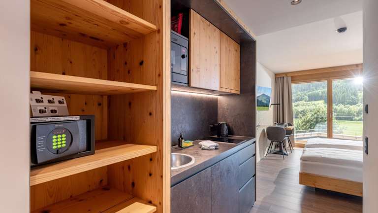 Die Wohneinheiten der SkiWelt-Lodge Brixen im Thale sind mit einem Flachbild-TV ausgestattet und verfügen über ein eigenes Badezimmer mit Dusche. Zudem bieten die Zimmer eine voll ausgestattete Küchenzeile, die die Selbstversorgung ermöglicht.