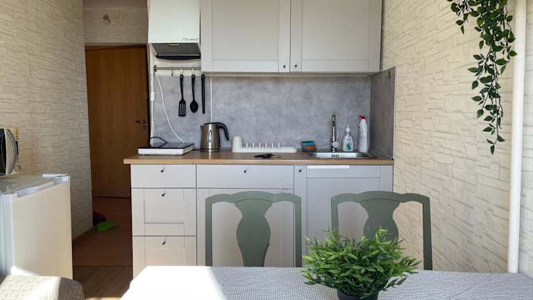 Das Apartment im Skolas 1 verfügt über 2 Schlafzimmer, ein geräumiges Wohnzimmer und eine gut ausgestattete Küche mit Kühlschrank und Backofen. Vom Balkon aus haben Sie einen herrlichen Blick auf den Fluss. Handtücher und Bettwäsche werden gestellt, so dass Sie sich um nichts kümmern müssen. Das Apartment bietet auch kostenfreies WLAN, so dass Sie während Ihres Aufenthalts immer online bleiben können.