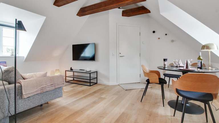 Die Unterkünfte im Hotel Skudehandelen sind komfortabel und bieten alles, was Sie für einen angenehmen Aufenthalt benötigen. Die Apartments verfügen über eine geräumige Terrasse mit Blick auf die Stadt, ideal für entspannte Abende im Freien. Die Küche ist gut ausgestattet mit einem Kühlschrank, einem Geschirrspüler, einem Backofen, einem Kochfeld, einem Toaster und einem Wasserkocher. Das private Badezimmer ist mit einer Badewanne oder einer Dusche ausgestattet. Kostenloses WLAN und kostenfreie Parkplätze stehen den Gästen zur Verfügung.