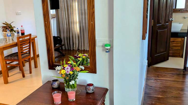 Die klimatisierten Zimmer im Sky and Sand Guesthouse sind komfortabel und modern eingerichtet. Jedes Zimmer verfügt über einen Flachbild-Sat-TV, eine Minibar und einen Balkon. Im eigenen Bad finden Sie eine Dusche, einen Haartrockner und kostenfreie Pflegeprodukte. Ein Essbereich mit Kühlschrank und Wasserkocher ist ebenfalls vorhanden. Genießen Sie den Blick auf den Garten von Ihrem Zimmer aus.