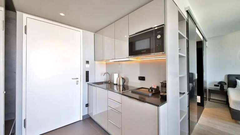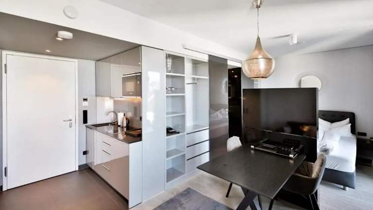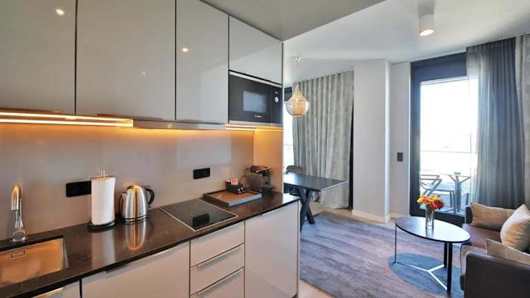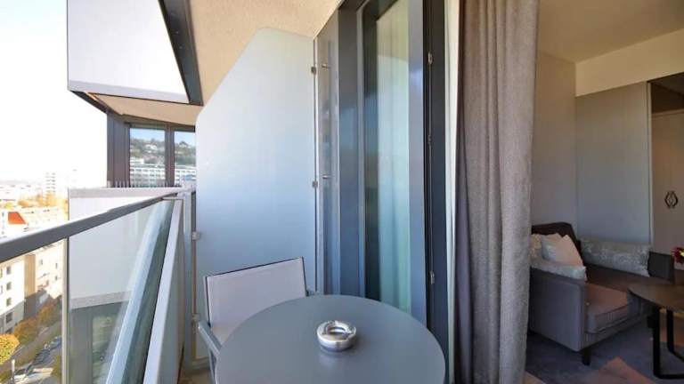 Die Zimmer im Sky Aparthotel sind mit einem Balkon und Stadtblick ausgestattet. Jedes Zimmer verfügt über einen Sitzbereich, einen Flachbild-TV und eine voll ausgestattete Küche, die Kühlschrank, Geschirrspüler, Mikrowelle, Minibar, Herdplatte, Kaffeemaschine und Wasserkocher umfasst. Zudem gibt es ein eigenes Badezimmer mit Dusche und kostenlosen Pflegeprodukten.