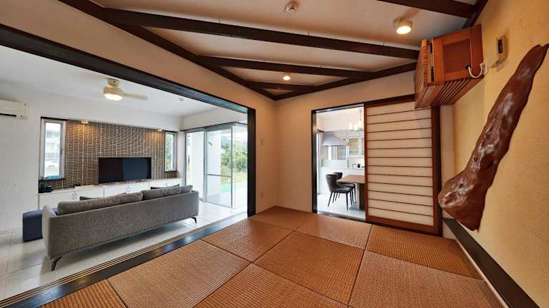 Die Sky Villa Toyohara liegt in einer malerischen Umgebung, nur 2,9 km von den Stränden Gyokou und Fukahama entfernt. Die Villa bietet Ihnen die Möglichkeit, die Schönheit der Umgebung zu erkunden und die nahegelegenen Sehenswürdigkeiten wie die Burg Nakijin Gusuku zu besichtigen. Der nächstgelegene Flughafen, der Flughafen Yoron, ist etwa 84 km entfernt.