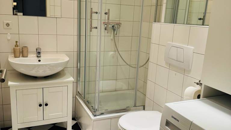 Die Ferienwohnung umfasst zwei Schlafzimmer, ein Wohnzimmer mit einem Flachbild-TV und eine gut ausgestattete Küche mit Kühlschrank und Geschirrspüler. Zudem stehen zwei Badezimmer mit Dusche zur Verfügung. Bettwäsche und Handtücher werden bereitgestellt. Weitere Annehmlichkeiten umfassen unter anderem einen Aufzug, Heizung, WLAN und Brettspiele/Puzzle.