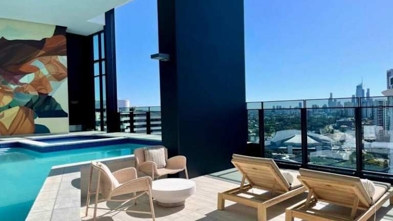 Skyline at Broadbeach 2bedrooms bietet eine Unterkunft mit Balkon und Blick auf das Meer und den Garten. Zur Verfügung stehen ein ganzjährig geöffneter Außenpool, ein Fitnessraum und eine Sauna. Die Unterkunft verfügt über eine Terrasse mit Stadtblick und bietet zudem ein Spa- und Wellnesscenter sowie einen Whirlpool. WLAN steht kostenlos zur Verfügung.
