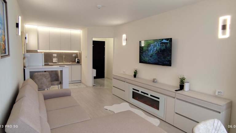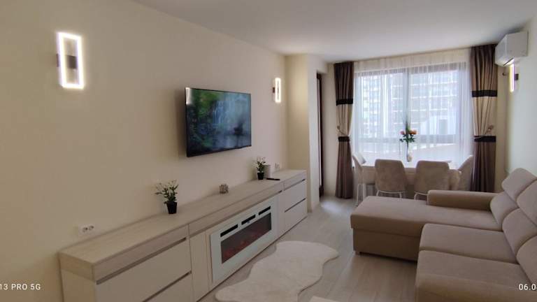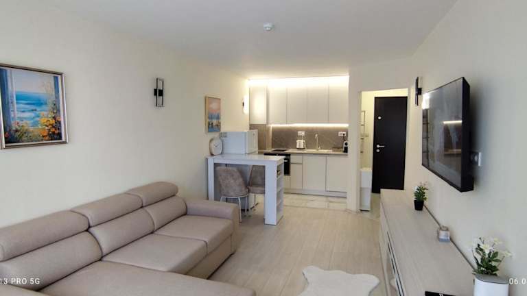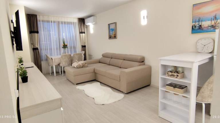 Die Unterkunft befindet sich im Bezirk Strandpromenade Golden Sands, nur 20 Meter vom Zentrum von Goldstrand entfernt. Der Strand liegt direkt vor der Tür, und der nächste Flughafen ist der Flughafen Varna, etwa 23 km entfernt.