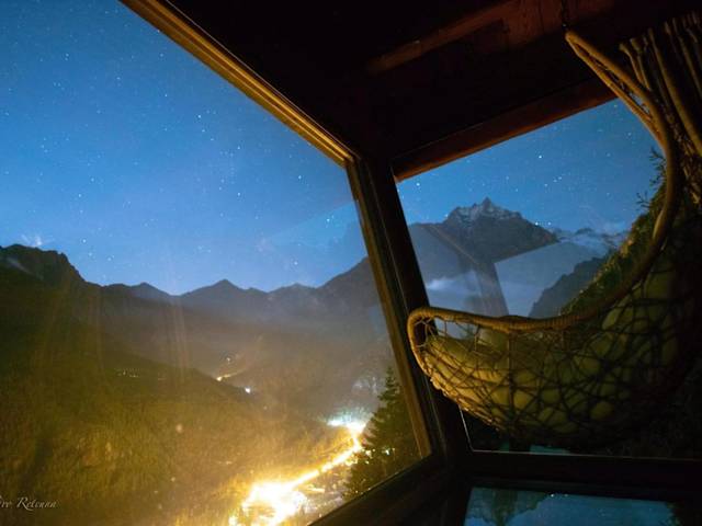 Erleben Sie eine einzigartige Unterkunft in der SKYLODGE 'il Rifugio dell'Anima' in Usseglio. Umgeben von einem malerischen Garten in der Region Piemont, bietet die Lodge einen atemberaubenden Blick auf die Berge. Genießen Sie ein italienisches Frühstück und lassen Sie sich von der natürlichen Schönheit der Umgebung verzaubern.