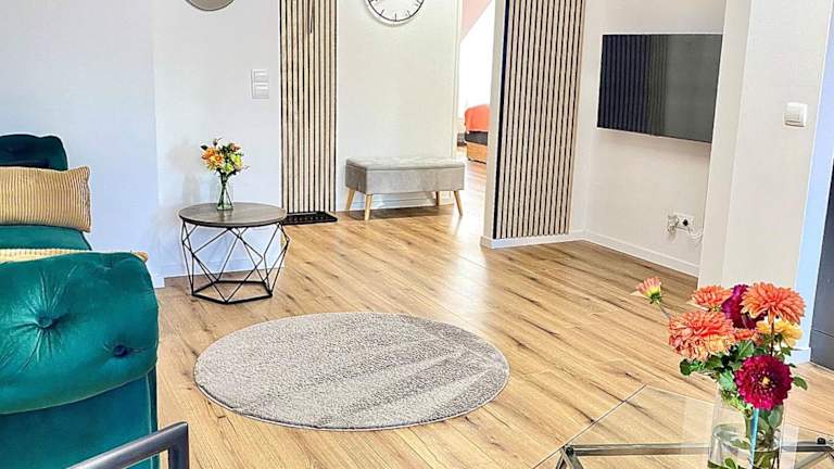 Die Ferienwohnung besteht aus einem Schlafzimmer und einem Wohnzimmer. Eine voll ausgestattete Küche mit Kühlschrank und Kaffeemaschine ist vorhanden. Das Badezimmer ist mit einer Dusche und kostenlosen Pflegeprodukten ausgestattet. Handtücher und Bettwäsche sind ebenfalls verfügbar.