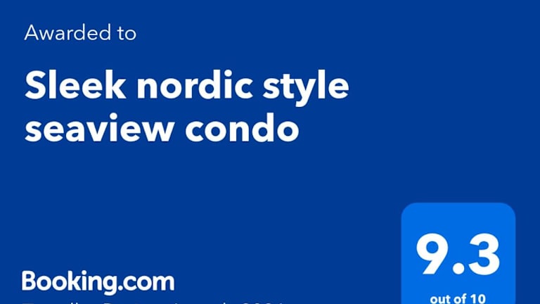 Sleek nordic style seaview condo ist eine moderne Ferienwohnung, die Übernachtungsmöglichkeiten bietet. Die Unterkunft ist mit kostenlosem WLAN ausgestattet und verfügt über einen Balkon sowie eine Terrasse. Sie zeichnet sich durch ihren nordischen Stil aus, der eine schlichte Eleganz vermittelt.