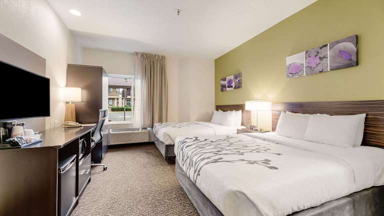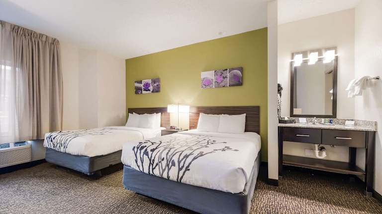 Die Zimmer im Sleep Inn Flagstaff sind geräumig und verfügen über Kabel-TV sowie Annehmlichkeiten wie eine Kaffeemaschine und einen Schreibtisch. Die Zimmer sind modern und in warmen Farben gehalten und bieten ein komfortables Ambiente für Ihren Aufenthalt.