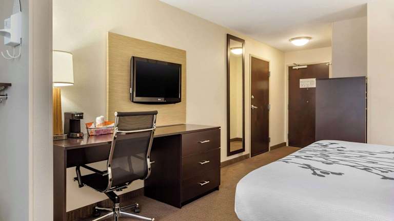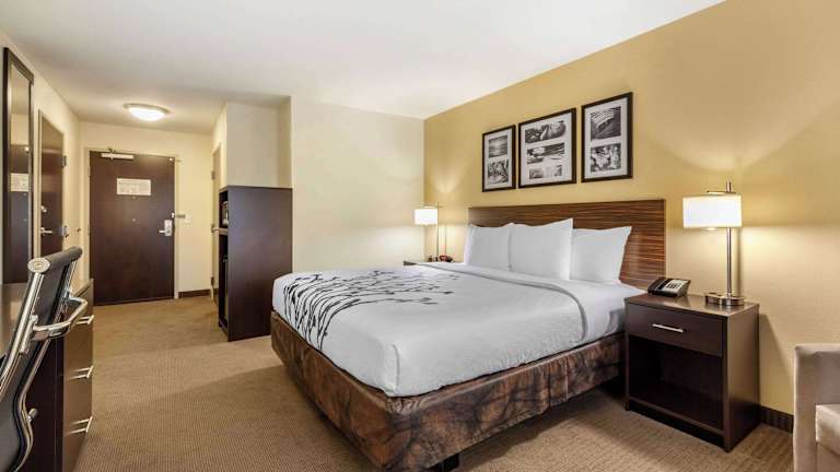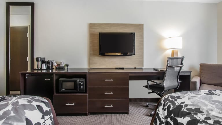 Das Sleep Inn & Suites Grand Forks Alerus Center bietet 82 Nichtraucherzimmer auf 3 Etagen, die bequem mit einem Aufzug erreichbar sind. Die Zimmer sind komfortabel eingerichtet und verfügen über Annehmlichkeiten wie einen Flachbild-Kabel-TV, eine Mikrowelle, einen Kühlschrank, eine Kaffeemaschine, einen Schreibtisch, einen Wecker, einen Haartrockner und ein Bügeleisen/-brett. Einige Zimmer bieten auch ein Schlafsofa für zusätzlichen Komfort.