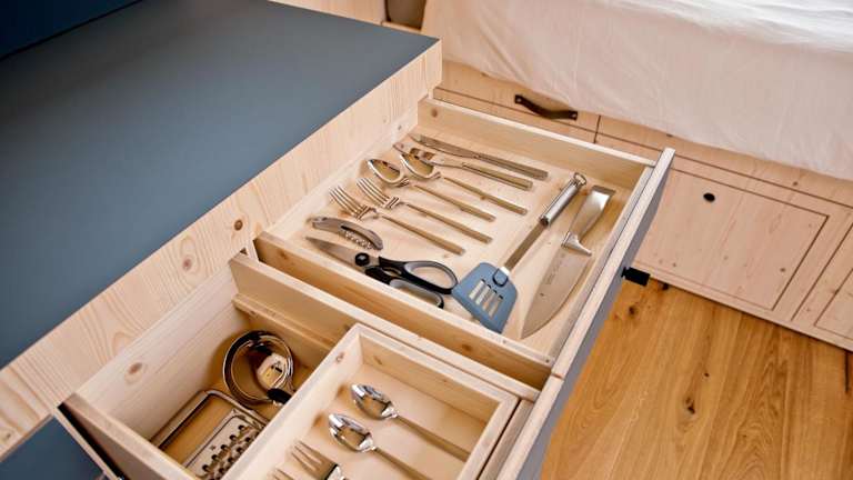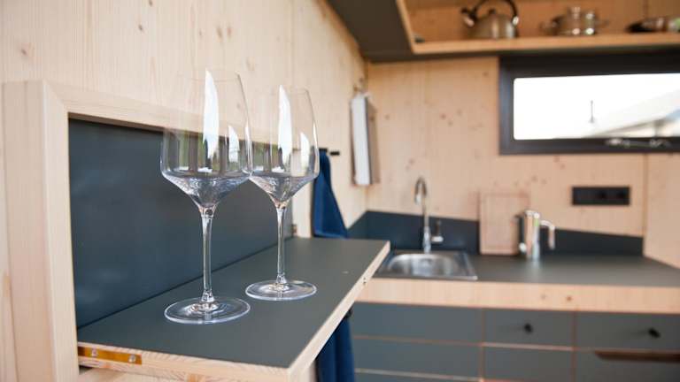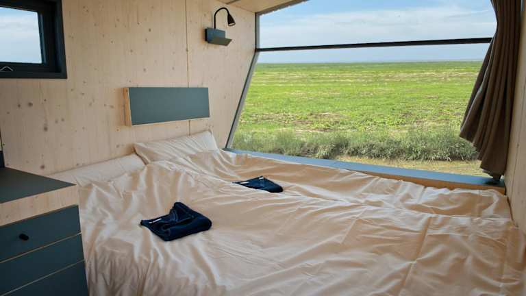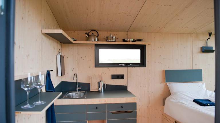 Das Ferienhaus besteht aus einem Schlafzimmer und einer voll ausgestatteten Küche. Handtücher und Bettwäsche werden bereitgestellt. Es ist zu beachten, dass die Unterkünfte keine eigenen Badezimmer haben; die Waschräume befinden sich in kurzer Entfernung auf dem Harlesiel-Campingplatz.