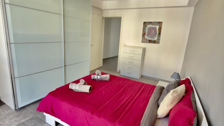 Die Ferienwohnung verfügt über zwei Schlafzimmer, ein Wohnzimmer und eine gut ausgestattete Küche mit Kühlschrank und Geschirrspüler. Zusätzlich sind zwei Badezimmer mit Dusche vorhanden. Handtücher und Bettwäsche werden bereitgestellt. Es gibt zudem eine Terrasse mit Stadtblick.