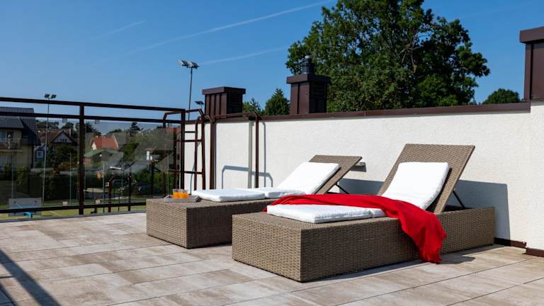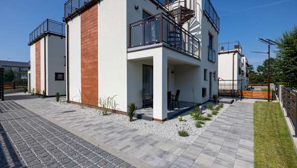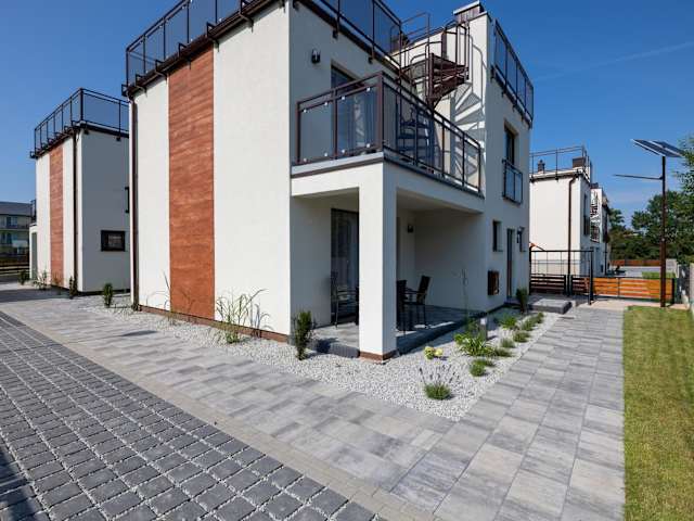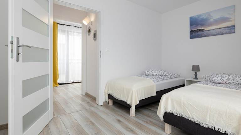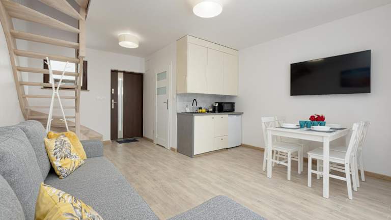 SŁONECZNE TARASY bietet Zimmer mit Balkon und Zugang zu einem Garten. Die Unterkunft ist modern ausgestattet und stellt kostenloses WLAN sowie einen Privatparkplatz zur Verfügung.