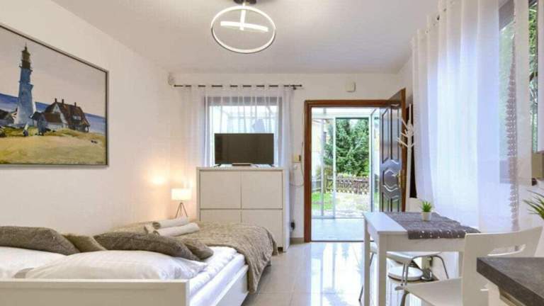 Die Unterkunft Small holiday apartment befindet sich in Łukęcin, 1,5 km von Strand Plaża Radawka und 2,5 km von Strand Pobierowo entfernt. Der Strand Łukęcin liegt in einer Entfernung von 600 m. Der Bahnhof Swinemünde ist 50 km entfernt und Miedzyzdroje Walk of Fame ist in 35 km zu erreichen.