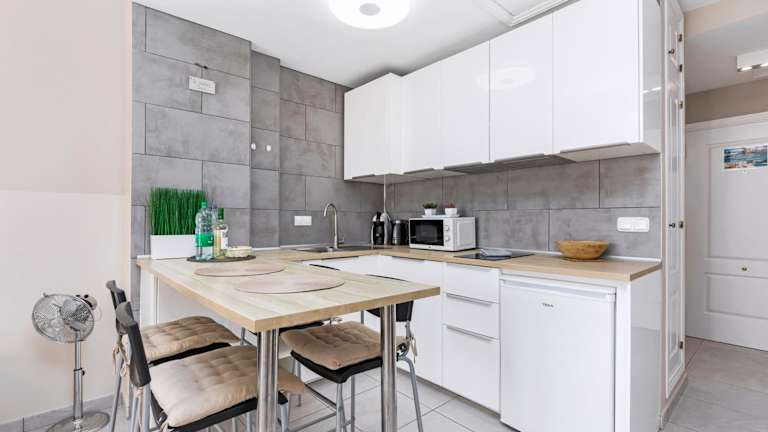Die Ferienwohnung ist ausgestattet mit 2 Schlafzimmern, einem Essbereich und einem Wohnzimmer. Die Küche beinhaltet einen Kühlschrank sowie eine Kaffeemaschine. Zudem ist ein Kabel Flachbild-TV vorhanden.