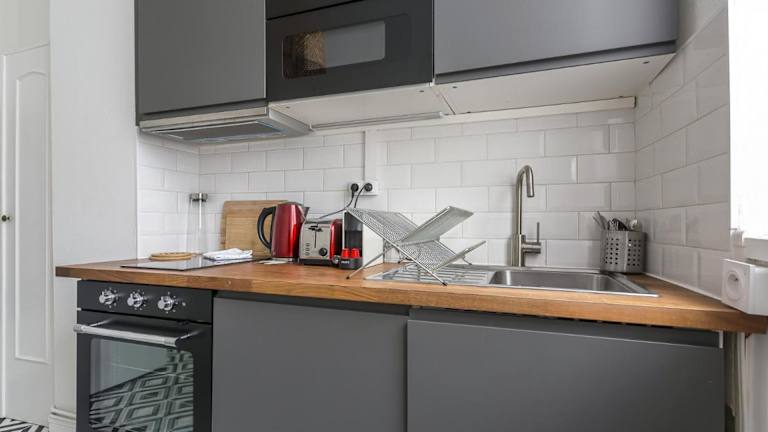 Die Ferienwohnung verfügt über ein Schlafzimmer, einen TV mit Satellitenkanälen, eine gut ausgestattete Küche mit Kühlschrank und Mikrowelle sowie ein Badezimmer mit Dusche. Handtücher und Bettwäsche werden bereitgestellt.