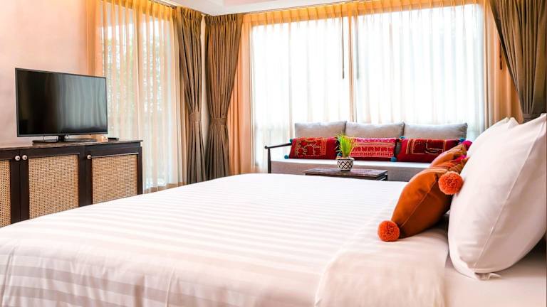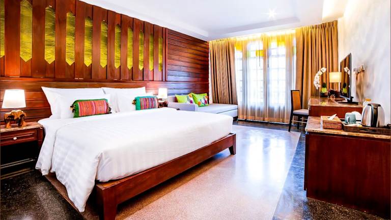 Die Zimmer im Smile Lanna Hotel sind klimatisiert und verfügen über kostenloses WLAN. Zur Ausstattung gehören auch ein Flachbild-Sat-TV, ein Safe und ein eigenes Badezimmer mit Dusche, kostenlosen Pflegeprodukten und einem Haartrockner. Einige Zimmer bieten zudem eine Veranda oder eine Terrasse mit Stadtblick. Bettwäsche und Handtücher werden gestellt.