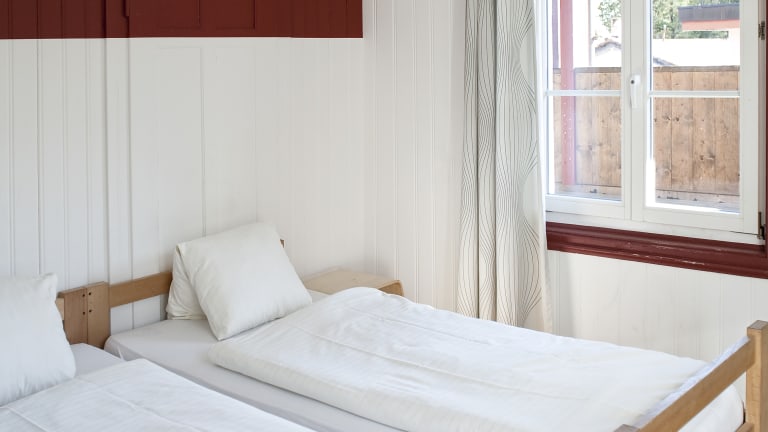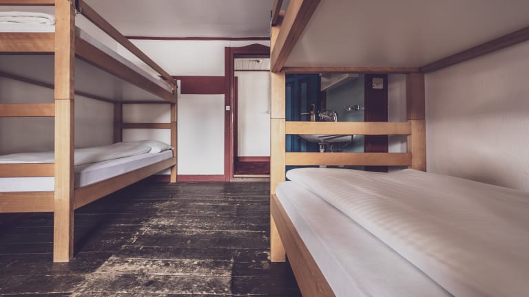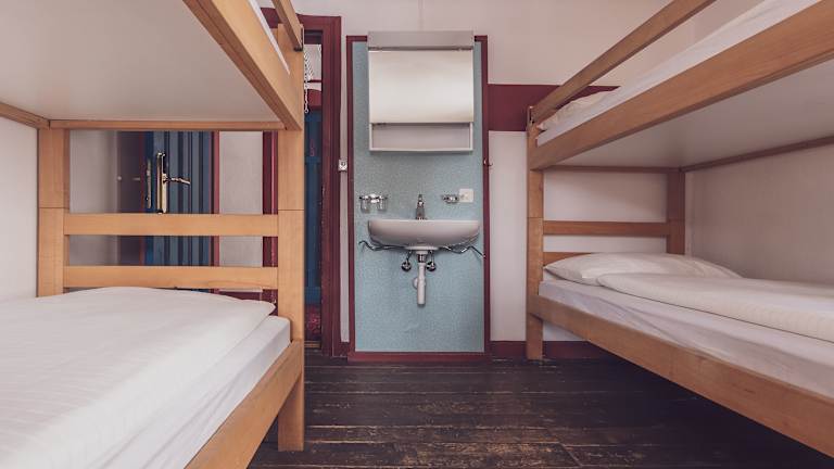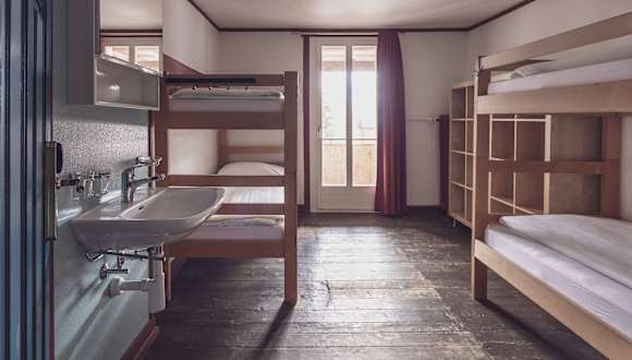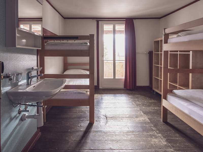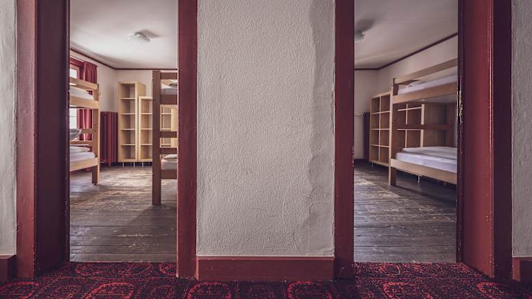 Die 23 Zimmer bieten Platz für bis zu 71 Gäste. Ausgestattet sind die Zwei-, Vier- und Fünfbettzimmer mit Stockbetten inklusive Bettwäsche und mit einem Waschbecken. Zudem verfügen einige Zimmer über einen Balkon mit Blick auf das Landwasser. Die Duschen und Toiletten befinden sich auf der Etage. Duschtücher werden von den Gästen selbst mitgebracht.