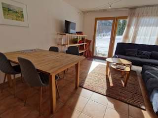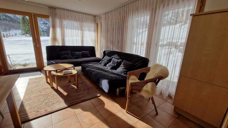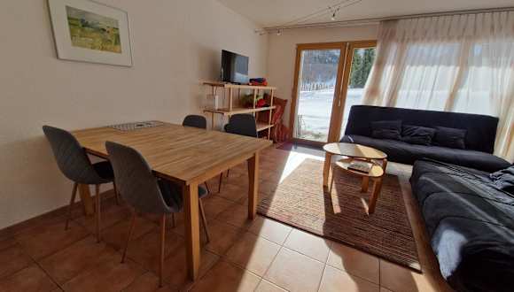 Die Ferienwohnung bietet ein Schlafzimmer, ein Wohnzimmer sowie ein Badezimmer mit Badewanne. Zur Ausstattung gehören ein Flachbild-TV und eine gut ausgestattete Küche mit Kühlschrank und Geschirrspüler. Handtücher und Bettwäsche werden gestellt. Die Kombination aus Balkon und Terrasse ermöglicht einen beeindruckenden Ausblick auf die umliegenden Berge.