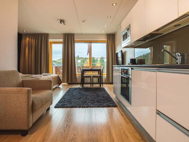 Snowline Stay A13 Levi Center Ski-In Ski-Out by Aavalevi bietet komfortable Übernachtungsmöglichkeiten mit direktem Zugang zu Skipisten und verschiedenen Annehmlichkeiten wie einer Sauna.