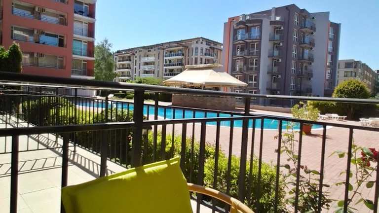 Verbringen Sie Ihren Urlaub im Сънсет бийч 3 in Sonnenstrand und genießen Sie eine Unterkunft mit privatem Pool und Parkplatz. Das klimatisierte Apartment verfügt über eine voll ausgestattete Küchenzeile, einen Flachbild-TV und eine Terrasse mit Blick auf den Pool und den Garten. Handtücher und Bettwäsche werden gestellt. Entspannen Sie auch im Garten und erkunden Sie die Umgebung, wie den Sunny Beach und das Action AquaPark. Der Flughafen Burgas ist nur 27 km entfernt und das Hotel bietet einen kostenpflichtigen Flughafentransfer an.
